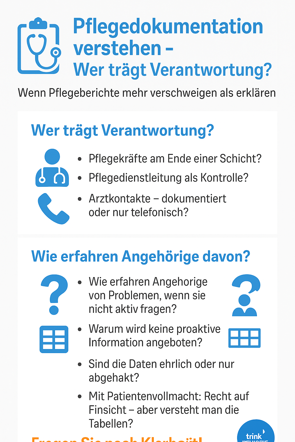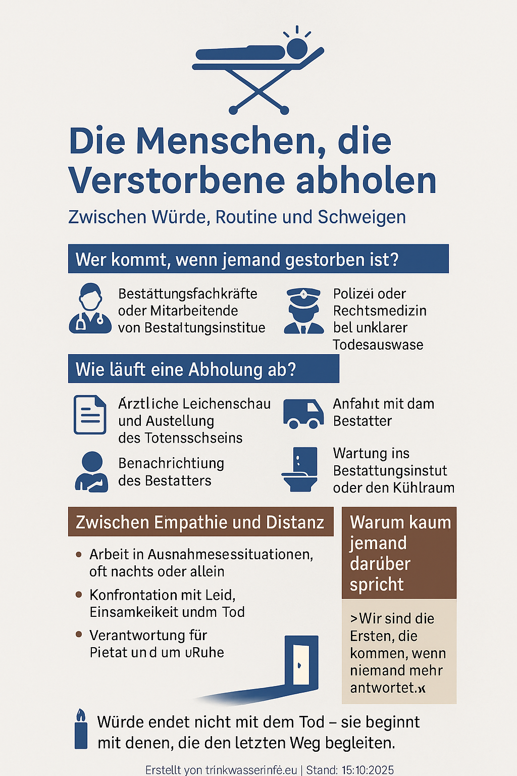 Meine Infografiken und Texte ersetzen keine Fach- oder Rechtsberatung. Wenn Sie verbindliche Informationen benötigen, wenden Sie sich bitte immer an autorisierte Fachstellen wie Bestattungsunternehmen, Fachkräfte für Rufanlagen, die Heimaufsicht oder Rechtsanwälte.